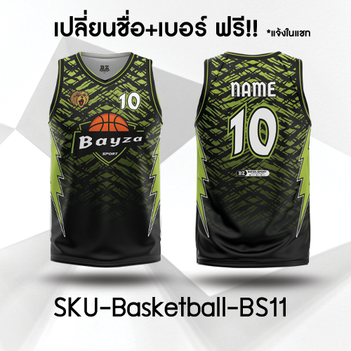 🏀 เสื้อบาสพิมพ์ลาย รุ่น BS11 (Black Green) ดีไซน์สีดำตัดเขียวนีออน กราฟิกเท่ ดุดัน