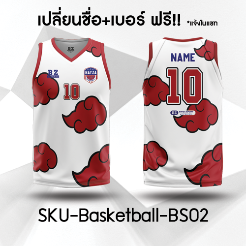 เสื้อบาสเกตบอล ดีไซน์สุดฮิตลายเมฆแดง (Akatsuki Style) บนพื้นขาว ตัดขอบคอและแขนด้วยสีแดง เพิ่มความดุดัน โดดเด่นไม่ซ้ำใครในสนาม ผลิตจากผ้า Micro Polyester เกรดพรีเมียม ใส่สบาย ระบายเหงื่อดีเยี่ยม